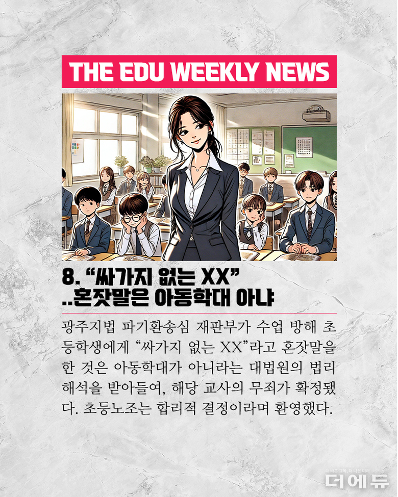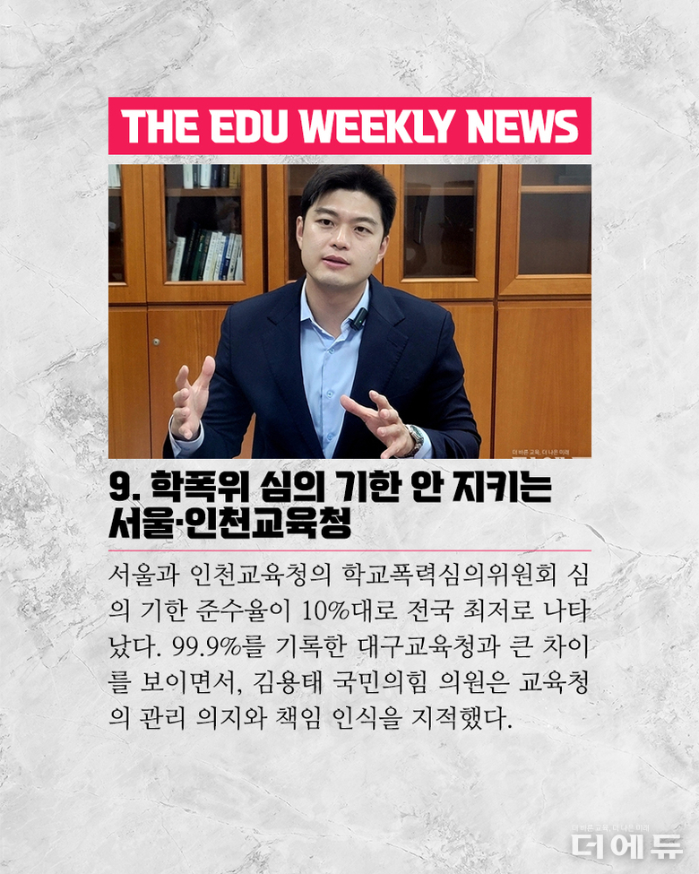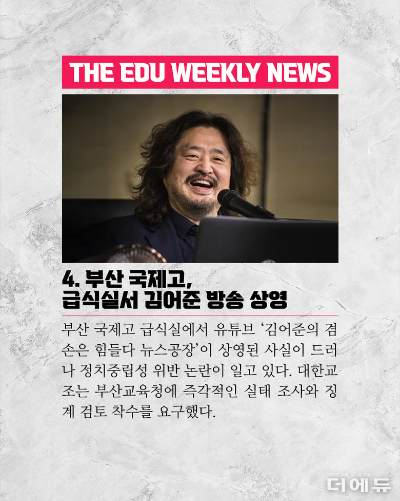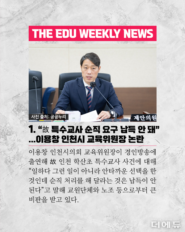 [주간 카드뉴스-10월 4주차] '이용창 교육위원장 故 특수교사 순직 납득 불가, 명재완 무기징역 선고, 학교를 쑥대밭 만들겠단 학부모, 부산 국제고서 상영된 김어준 방송, 국교위 고교학점제 학점 이수 기준 변경 논의 결정 등'