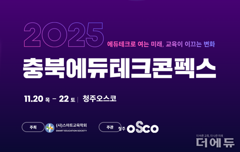 더에듀 여원동 기자 | ‘2025 충북에듀테크 콘펙스’가 오는 20일 청주오스코(OSCO)에서 개막한다. ‘에듀테크로 여는 미래, 교육이 이끄는 변화’라는 주제로 총 22일까지 총 3일간 40여개 세미나와 65개 기업의 전시 등 다채로운 콘텐츠가 관람객을 기다리고 있다.