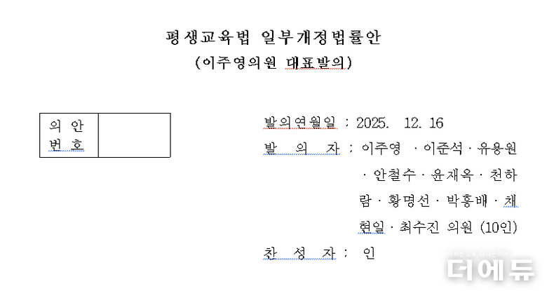 이주영 개혁신당 의원은 16일 이 같은 내용이 담긴 ‘평생교육법’ 개정안을 대표 발의했다고 밝혔다.