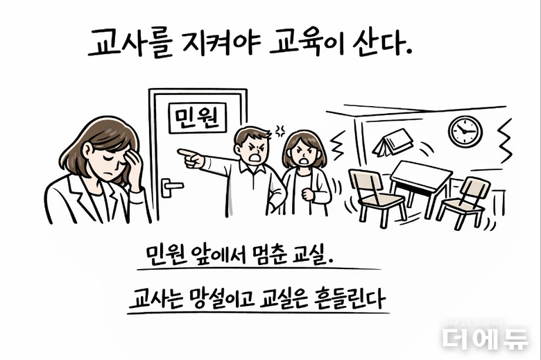 더에듀 | 지금 이 순간에도 한 교사는 교실 앞에서 망설인다. 지도를 해야 할지, 아니면 참아야 할지.