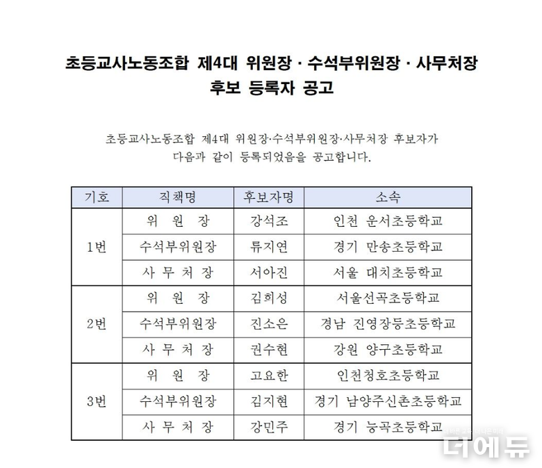 초등노조는 곧, 이 같은 내용의 제4대 위원장 선거 투표 결과를 공지할 예정이다.