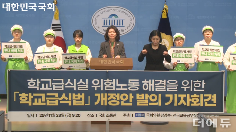 강경숙 조국혁신당 의원(국회 교육위원회)과 전국교육공무직본부는 28일 기자회견을 열고 이 같은 내용이 담긴 학교급식법 개정안을 대표 발의했다고 밝혔다.