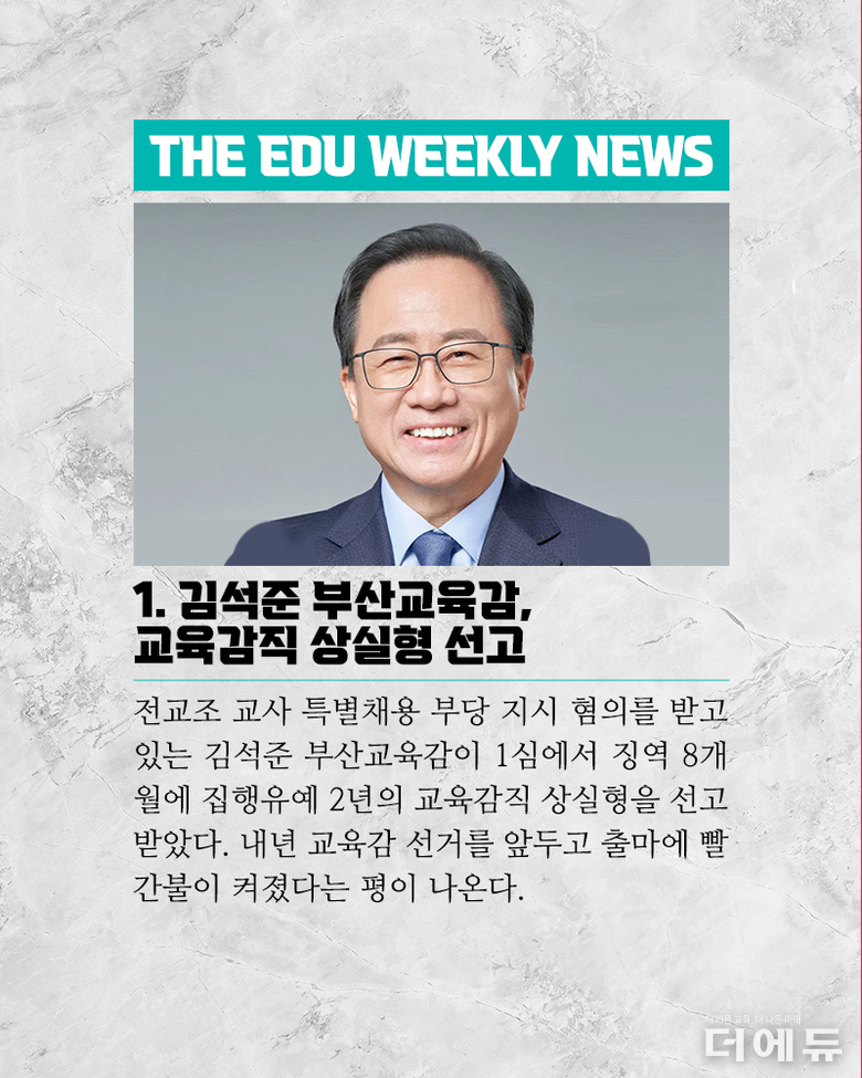 [주간 카드뉴스-12월 2주차] '김석준 부산교육감 교육감직 상실형 선고, 오승걸 평가원장 사임, 동덕여대 학생들 남녀공학 전환 반대'