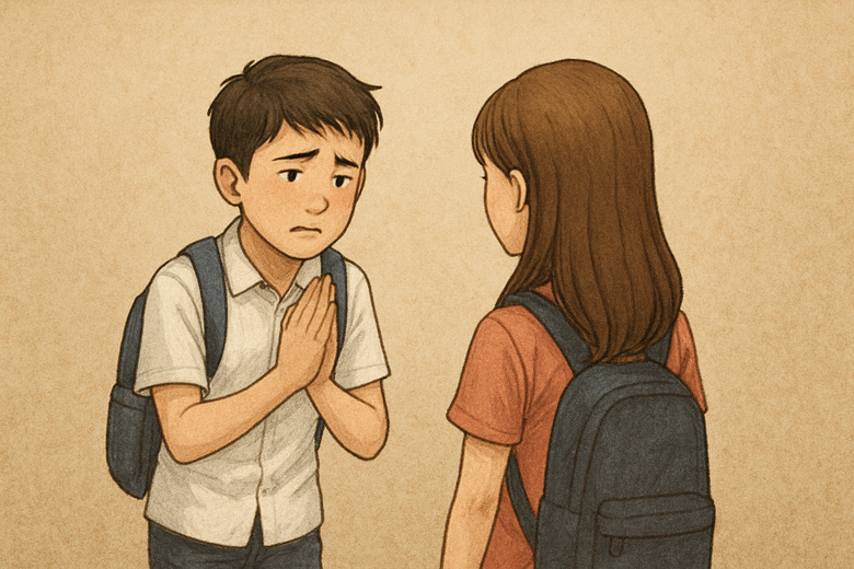 이전 글에서 예로 들었던 상황인데요. 내가 요리 시간에 케찹을 갖고 장난을 치다 옆에 있는 친구의 옷에 케찹을 묻힌 상황입니다. 명백히 피해를 준 상황이지요. 이럴 때 첫째로, 기본은 원상복구입니다. 친구의 옷에 묻은 케찹을 닦고 지워줘야 합니다. 화장실에 가서 박박 문질러 줘야 할 수도 있습니다. 안 지워지면 새로 옷을 사줘야 할 수도 있습니다. 둘째로 상처받은 친구의 마음을 어루만져 줘야 합니다. 내 행동으로 속이 상한 친구에게 진심으로 사과해야 합니다.