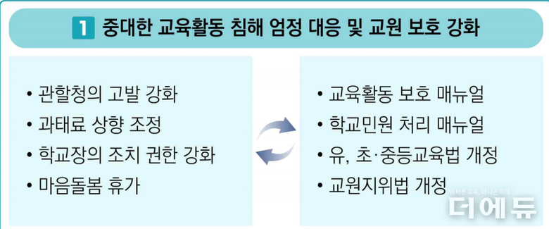 특이민원과 중대 침해에 대한 학교장의 조치 권한도 초중등교육법 등에 담아 강화한다.