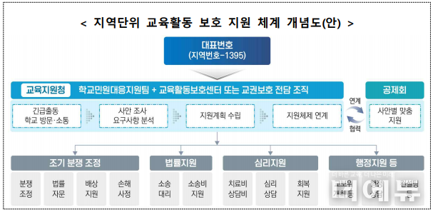 교육청은 학교 구성원의 요청이 있으면 중대·심각 사안에 고소·고발 등 법적 대응한다.