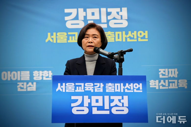더에듀 지성배 기자·김연재 수습기자 | “교실을 지킨 24년, 교육을 바꾼 4년 — 여러분 곁을 지킬 ‘통역이 필요 없는 교육 전문가’ 강민정입니다.”