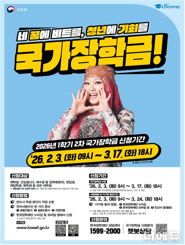 교육부와 한국장학재단은 3일 이 같은 내용이 담긴 2026학년도 국가장학금 1학기 2차 신청을 안내했다.