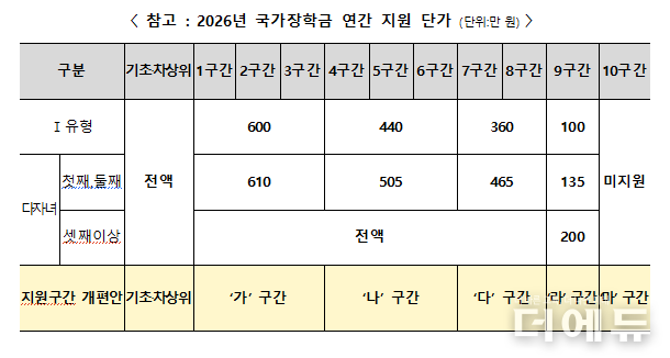 한편, 국가장학금 학자금 지원 구간은 내년부터 10구간에서 5구간으로 개편된다.