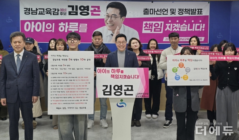 교육부 차관보로 재직하며 국가 교육정책 기획과 집행을 총괄했고, 국립국제교육원장으로서 학교 현장에서 정책이 어떻게 작동하는지를 점검해 왔다고 자신을 소개한 김영곤 예비후보는 경남교육은 학습·돌봄·정서·안전을 아이의 성장이라는 하나의 기준으로 묶어야 한다고 강조했다.