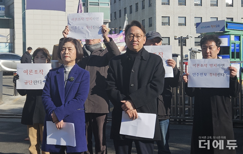 기자회견을 연 강민정·김현철은 “이미 스트레이트뉴스와 조원씨앤아이에 시정과 해명을 요구했지만 충분한 답변을 받지 못했다”며 “여론조사는 질문 문구와 후보 제시 방식만으로도 결과가 달라질 수 있다”고 문제를 제기했다.