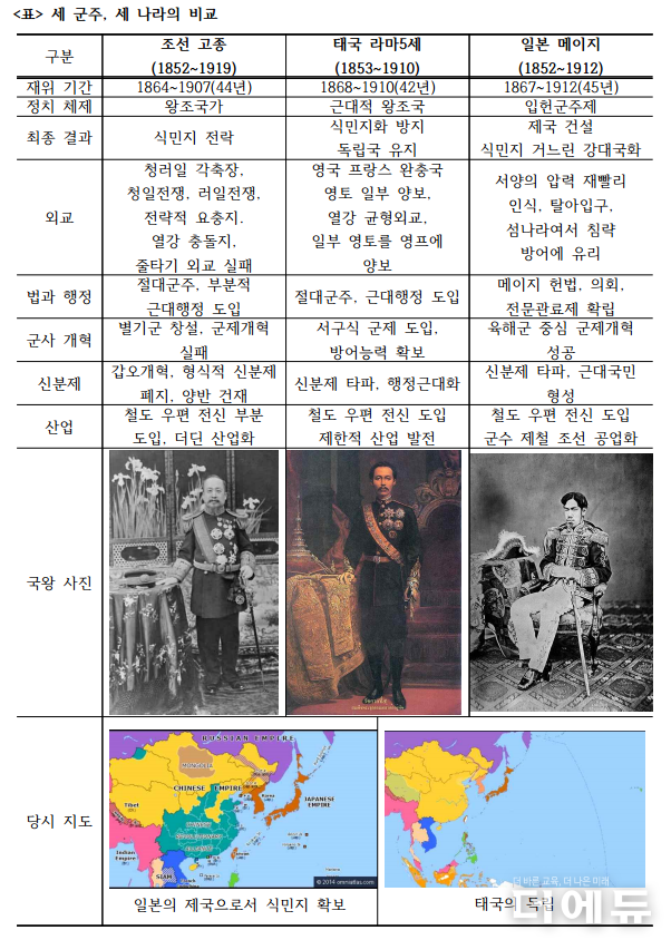 조선 고종, 일본 메이지, 태국(당시 시암) 라마 5세는 모두 유사한 시기에 절대적인 권력을 지닌 왕으로 40여 년 간 재위했다. 그 결과는 판이하게 달랐다.