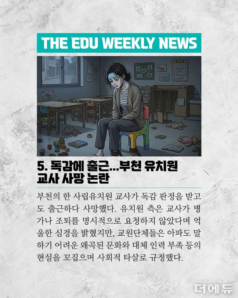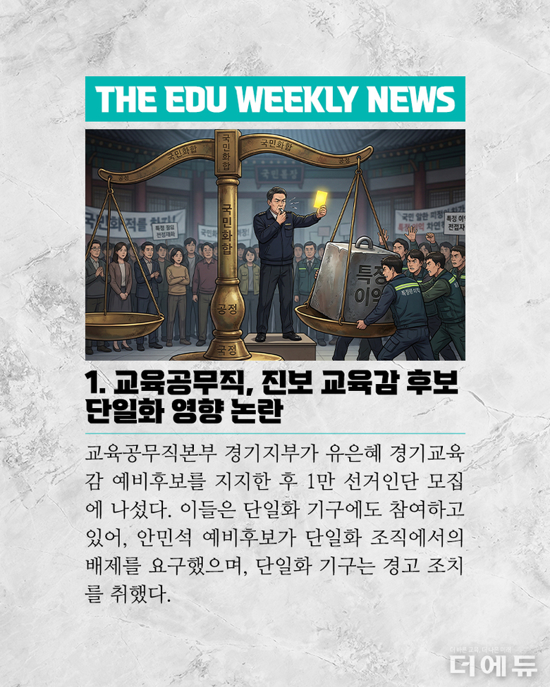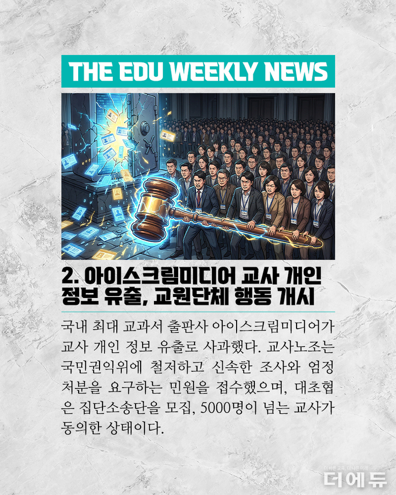 [주간 카드뉴스] 12월 3주차 - 'AIDT는 교육자료?, 전북 행정직원 사망, 교사노조 위원장 선거, 대전 초등 여교사 학생 성폭행'