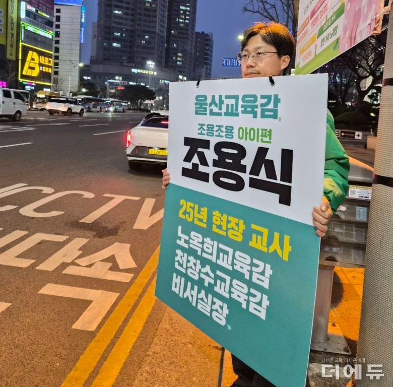 그는 고인이 된 노옥희 전 울산교육감의 계승자로 자처하고 선거를 뛰고 있다.