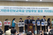 더에듀 지성배 기자 | 경기교육감 민주진보 후보로 안민석 예비후보가 선출됐다. 안 단일후보는 “진보교육 시즌2”를 예고했다. 후보 단일화 기구인 경기교육혁신연대(혁신연대)는 22일 경기도의회 브리핑룸에서 안민석 예비후보가 단일 후보로 선출됐다고 밝혔다. 단일후보 선출은 선거인단 55%, 여론조사 45% 비중으로 단순 합산한 결과이다. 안 단일후보 선출인은 “교육개혁과 변화를 갈망하는 국민과 도민의 염원”이라며 “진보교육 시대를 함께 열 것”이라고 강조했다. 이어 “4년이 아니라 최소 10년 교육개혁 비전으로 도민에게 호소하고 지지를 얻겠다”며 “세 분(박효진·성기선·유은혜)의 좋은 정책과 혁신연대의 헌신 그리고 열정으로 함께 최소 10년 경기교육 비전을 만들어 진보교육 시즌2 시대를 경기도에서 열겠다”고 밝혔다. 혁신연대는 지난달 31~4월 16일 선거인단을 모집하고, 지난 18~20일 여론조사와 19~21일 선거인단 투표를 진행했다. 선거인단에는 약 7만 명이 참여하며 큰 관심을 받았다. 한편, 이날 기자회견에 앞서 단일후보 선출 결과가 유출돼 논란이 됐다. 특히 안 예비후보는 예정된 기자회견 시간보다 40분 가까이 늦게 모습을 드러냈으며, 늦게 참석한 것