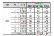더에듀 김연재 수습기자 | 2026년 교육대학교(교대) 정시 경쟁률이 3.6대 1로 5년 새 가장 높았다. 교대 선호도 하락으로 인한 정시 합격선 하락과 불수능이 영향을 미친 것으로 예상됐다. 9일 종로학원은 이 같은 내용이 담긴 ‘2026학년도 교대 정시 경쟁률 분석’ 자료를 공개했다. 자료에 따르면, 전국 10개 교대 정시 지원 인원은 5128명, 경쟁률은 3.60대 1로 집계됐다. 이는 최근 5년 새 최고치이다. ▲2022학년도 2.21대 1(4570명) ▲2023학년도 1.87대 1(3863명) ▲2024학년도 3.15대 1(7522명) ▲2025학년도 2:65대 1(4888명)이었다. 가장 높은 경쟁률은 춘천교대로 4.61대 1(지원인원 590명), 가장 낮은 경쟁률을 서울교대로 3.03대 1(지원인원 818명)이었다. 초등교육과를 둔 한국교원대와 이화여대, 제주대 등 3개 대학의 평균 경쟁률도 5.33대 1로 최근 5년 새 최고를 기록했다. ▲2022학년도 5.82대 1(1만 3287명) ▲2023학년도 4.96대 1(1만 1363명) ▲2024학년도 5.05대 1(1만 1348명) ▲2025학년도 5.59대 1(1만 3470명)이었다. 이번 입시