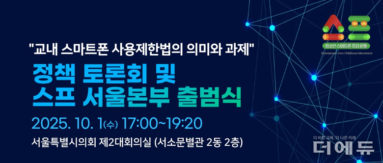 스프운동 서울본부는 오는 1일 오후 5시, 서울시의회 제2대회의실에서 ‘교내 스마트폰 사용 제한법의 의미와 과제’ 정책 토론회를 열고, 이어 ‘청소년 스마트폰프리운동 서울본부’ 출범식을 연다고 30일 밝혔다.