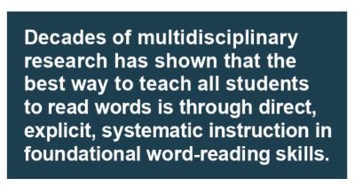 사회구성주의 교육에서 인기 있는 학생 주도 탐색이나 탐구 기반 학습 같은 접근, 또 점진적으로 교사가 읽기를 보여주다 학생들과 같이 읽다가 독립적으로 읽는 단계적 접근 같은 것은 효과적이지 않다는 것이 이 문해 교수법의 관점이다.