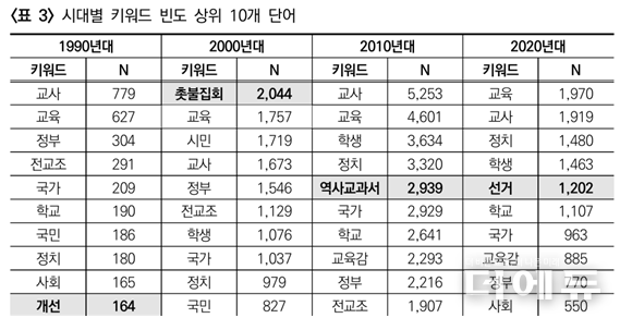 연구팀은 교사의 정치적 기본권에 대한 사회적 관심도는 전반적으로 우상향하는 추세를 보였으며, 특정 사회・정치적 사건을 계기로 급격히 고조되는 양상도 함께 나타났다고 정리했다.