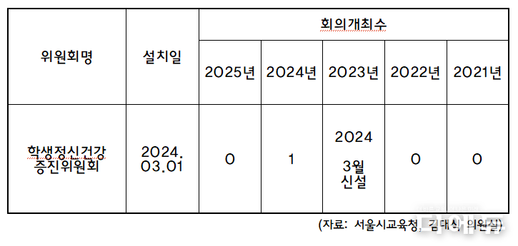 더에듀 지성배 기자 | 서울에서 매년 평균 30명 이상의 학생이 스스로 생을 마감하고 있지만, 이를 해소하기 위해 설립한 ‘학생정신건강증진위원회’(위원회)는 유명무실하다는 지적이 제기됐다.