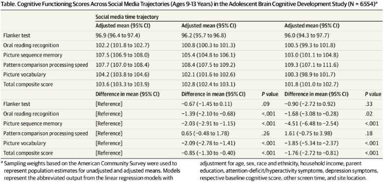 요즘 증가하는 청소년 소셜 미디어 사용이 인지 발달에 끼치는 부정적 영향을 밝힌 비교적 큰 규모의 추적 연구인 만큼 더 상세한 내용을 살펴보기 위해 미국 의학 협회 저널(JAMA)에서 원문을 확인했다.