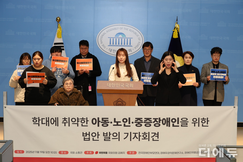 19일 김예지 국민의힘 의원(국회 보건복지위원회)은 기자회견을 열고 이 같은 내용이 담긴 아동학대처벌법과 노인복지법, 장애인복지법, 통신비밀보호법 등 4개 법률 개정안을 대표 발의했다고 밝혔다.