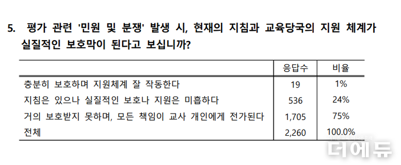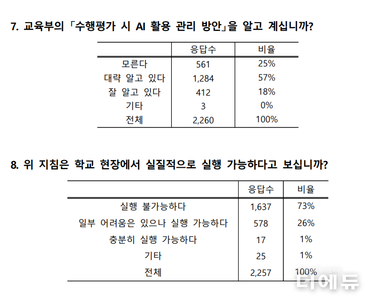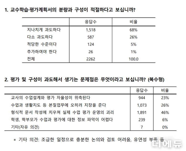 응답자들은 “형식적 문서 작성에 치우쳐 실제 수업과 평가 운영에 괴리가 발생한다”, “수업과 생활지도 등 본질 업무에 지장을 준다” 등으로 평가했다.