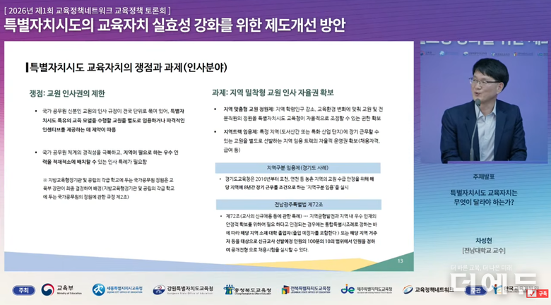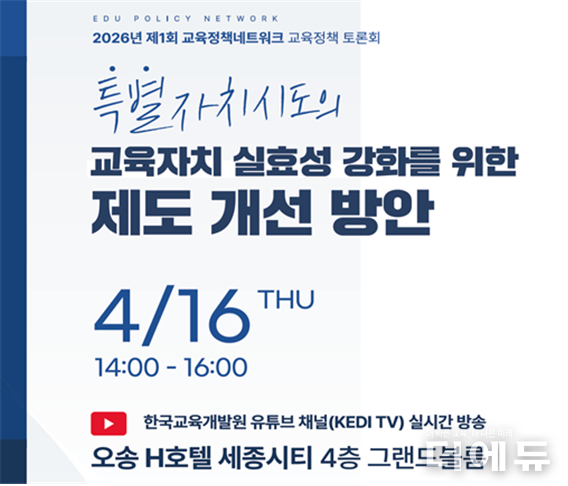 한국교육개발원은 지난 16일 ‘2026년 제1회 교육정책네트워크 교육정책 토론회’를 열고 ‘특별자치시도의 교육자치 실효성 강화를 위한 제도개선 방안’을 다뤘다.