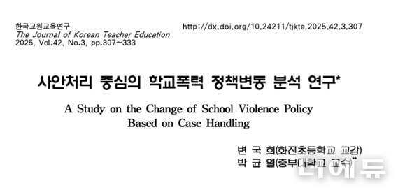 최근 ‘한국교원교육연구’에 게재된 변국희·박균열 연구팀의 ‘사안처리 중심의 학교폭력 정책변동 분석 연구’는 킹던(Kingdon)의 정책흐름모형을 통해 학교폭력 정책이 급변하는 과정을 분석했다.