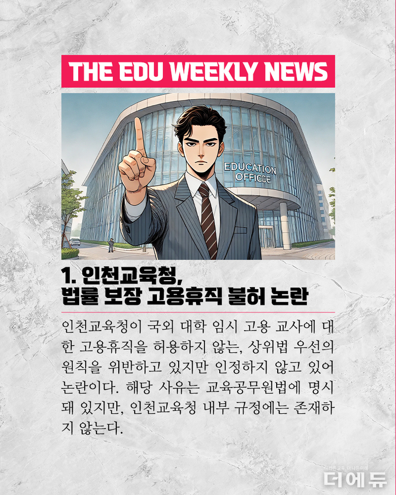 신임 일본 문부과학대신, 교원 근무 환경 개선 추진 의지 마쓰모토 요헤이 신임 일본 문부과학대신은 22일 취임 기자회견을 통해 고교 무상교육, 무상급식, 지역인재 육성, 수학 지원금 제도 확대, 고교 개혁 등의 정책을 언급하고 교원의 근무 환경 개선 추진 의지와 현장 의견 청취를 통한 현장감 있는 행정을 하겠다고 밝혔다. 전임 아베 슌코 대신은 21일 퇴임했다. 영국, 무상 조식 제공에 대기업 참여 / 특수교육 개혁 미뤄져 무상 조식 급식 제공 확대 정책을 추진하고 있는 영국 교육부는 22일 영국 내 4대 마트 체인을 소유한 유통 대기업인 모리슨즈(Morrisons)와 세인즈버리스(Sainsbury’s), 메이저 시리얼 제조사인 위타빅스(Weetabix), 아동 무상 조식 제공 비영리기관인 매직 브렉퍼스트(Magic Breakfast) 등 4개 기관의 후원을 받기로 했다고 밝혔다. 같은 날, 브리짓 필립슨 교육부장관은 올해부터 시행 예정이던 특수교육 개혁은 학교 백서 작업이 내년초로 미뤄지면서 연기될 것임을 시사했다. 독일, 컴퓨터 과학 필수 교과 확대 / 종일제 초등학교, 중등 교육 기회 확대로 이어져 독일 정보학회 등은 21일 ‘2025~2026학년도 컴