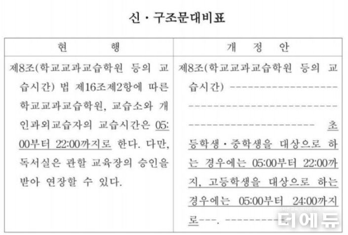 서울교육청은 입장문을 통해 “학생들이 이미 하루 9시간의 공교육을 받고 있으며, 현행 오후 10시까지의 학원 교습만으로도 하루 13시간의 학습이 가능해 학습권은 충분히 보장되고 있다”고 반박했다.