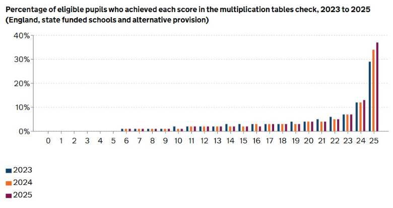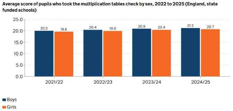 영국 교육부는 20일 이런 내용을 포함한 2024~2025학년도 ‘곱셈표 검사(Multiplication Tables Check, MTC)’ 결과를 발표했다.