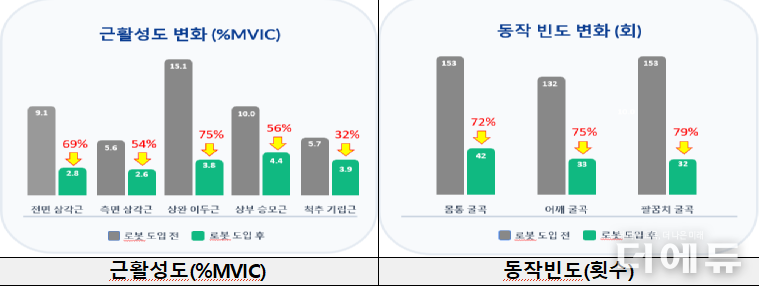조리 종사자 신체 부담 역시 크게 완화됐다. 근육 활성도는 32~75%, 몸통·어깨 굴곡 등 동작 빈도 72~79% 감소를 보였으며, 조리 중 심박수 증가율과 피로·통증 등 주관적 불편감 역시 전반적으로 감소했다.