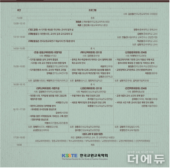 ‘교원양성’ 세션에서는 교사 자율성과 교직 만족도를, ‘신진학자’ 세션은 교권 5법과 서이초 사건 이후 교사의 인식을 심도 깊게 논의한다.