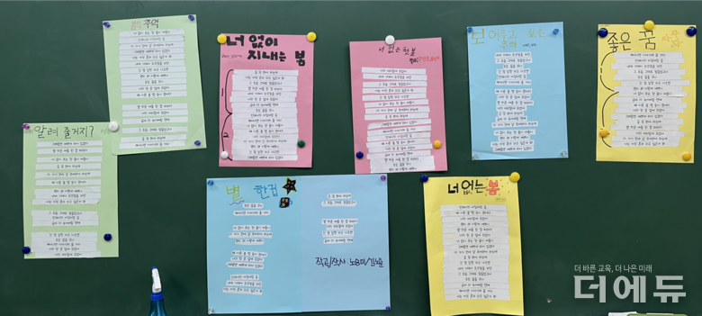 이후 원곡을 감상하며 곡의 전반적인 분위기를 느껴보고, 자신들이 재구성한 가사는 어떤 분위기의 음악과 어울릴지 짝과 함께 정리했다. 가사와 음악이 어떻게 연결되는지에 대한 기초적인 감각을 형성하는 단계였다.