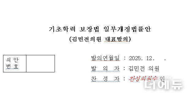 김민전 국민의힘 의원은 26일 이 같은 내용이 담긴 ‘기초학력 보장법’ 개정안을 대표 발의했다고 밝혔다.