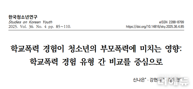 연구진은 이를 두고, 학폭 피해는 청소년에게만 국한된 문제가 아니라 부모에게도 심리적 고통과 양육의 어려움을 초래하는 복합적 위기로 봤다.