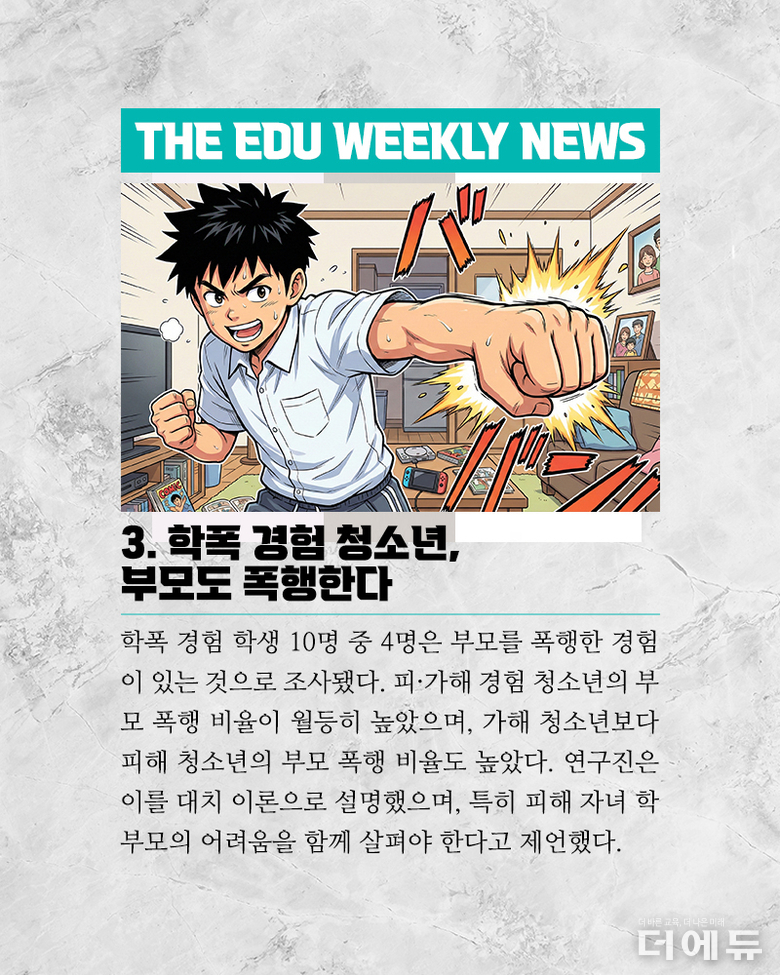 노르웨이 학폭 감소, 학교 만족도 개선 등 노르웨이 교육연구부 산하 교육훈련청은 11일 2025년도 학생 설문조사 결과를 발표했다. 학폭 경험 학생은 감소하고, 학습 동기와 학교 만족도는 증가했다. 교사들의 지원에 대한 만족도도 개선됐다. 모르텐 로센크비스트 청장은 “좋은 학교 환경을 위한 노력이 성과가 있어 기쁘다”고 자평했다. 이 결과에 관한 상세한 분석 보고서는 1월에 발표하기로 했다. 12일에는 장기 과제로 기말고사를 대신하는 시범 사업에 대한 평가보고서를 발표했다. 노르웨이 과기대에 수탁을 맡긴 이번 보고서는 3차 중간 보고서로 장기 과제가 학생 역량의 깊이와 넓이를 시연할 기회를 제공했지만, 교과에 따른 적용의 격차가 크다고 했다. AI의 사용이 공정성을 해칠 수 있어 국가적 지침이 필요하다는 점도 짚었다. 결론으로는 장기 과제의 잠재력을 고려해 시범 사업을 지속할 것을 권했다. 덴마크 교육부장관 “자폐, ADHD도 규칙 준수 예외일 수 없어” 등 덴마크 교육부는 10일, 마티야스 테스파예 장관이 특수교육 대상 학생의 필요에도 불구하고 학교의 규율은 강하게 적용돼야 한다는 취지로 셸란스케 뉘헤데르에 실은 칼럼을 게재했다. 테스파예 장관은 “ADHD