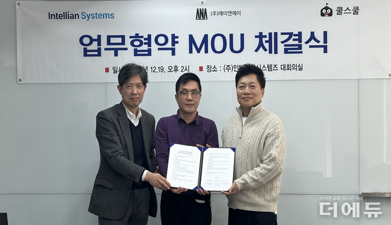 더에듀 김연재 수습기자 | 미래교실 통합 컨설팅 기업 쿨스쿨이 시스템·네트워크 인프라 전문기업 인텔리안시스템즈, 미디어·시청각 전문기업 에이엔에이와 ‘미래교실 미디어 플랫폼 확장’을 위해 3자 업무협약(MOU)’을 체결했다고 29일 밝혔다.