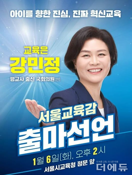 더에듀 지성배 기자 | 강민정 전 더불어민주당 의원이 서울교육감에 도전한다. 치열한 내부 경선을 뚫을 수 있을지 주목된다.