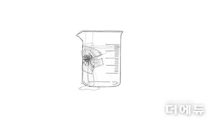 이런 저의 모습을 ‘깨진 비이커’로 표현했어요. 그 비이커 안에 감정이라는 물이 새어 나오고 있었는데 저는 물이 새지 못하게 테이프로 막았어요. 감정을 숨겨봤자 더 안 좋아질 뿐인데 풀어낼 용기가 없었어요.