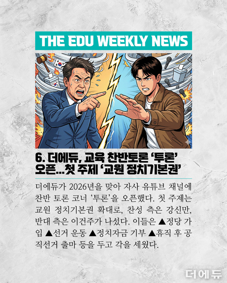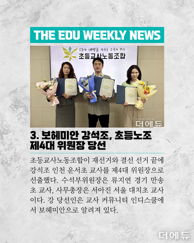 [주간 카드뉴스] 12월 3주차 - 'AIDT는 교육자료?, 전북 행정직원 사망, 교사노조 위원장 선거, 대전 초등 여교사 학생 성폭행'
