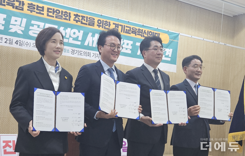 단일화에 참여한 후보 4명은 “무너진 경기교육을 바로 세우고 공공성과 민주성 회복을 위한 공동의 책임과 결의를 확인하고자 이 자리에 섰다”며 “이번 경기교육감 선거는 경기교육의 방향과 가치, 그리고 책임의 주체를 다시 세우는 중대한 사회적 선택의 과정”이라고 강조했다.
