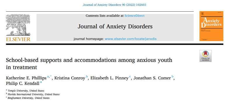 먼저 캐서린 필립스(Katherine Phillips) 템플대 심리학과 교수를 비롯한 연구진이 미국 불안장애 학회지에 2022년 8월 실은 ‘불안으로 치료 중인 청소년을 대상으로 한 학교 기반 지원과 편의 제공(School-based supports and accommodations among anxious youth in treatment)’ 논문이다.