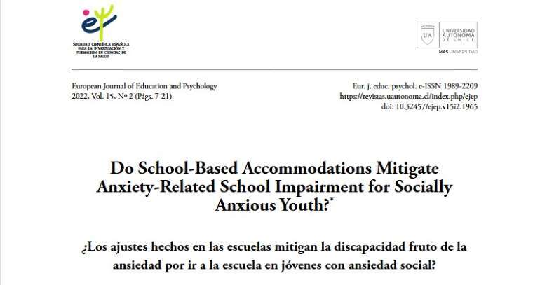 이어 살펴볼 논문은 소피 마르텔(Sophie R. Martel) 연구원 등 예일대 아동 학습 센터에서 2022년 유럽 교육 및 심리학회지에 게재한 ‘학교 기반 편의 제공이 사회적 불안이 있는 청소년의 불안 관련 학교생활 기능 저하를 완화하는가(Do School-Based Accommodations Mitigate Anxiety-Related School Impairment for Socially Anxious Youth?)’라는 논문이다.