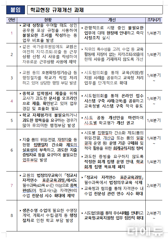 더에듀 김연재 수습기자 | 교육현장의 법정의무교육, 예산 집행 관련 증빙 내역, 학생 대상 공적 조서 작성 등에 간소화가 추진된다.