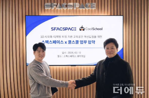 양 기관은 지난 12일 업무협약을 체결, 미래형 교육공간 혁신 모델 공동 개발에 나선다. 쿨스쿨은 학교 교육과정, 정책 방향, 예산 구조를 반영해 공간을 기획하고 컨설팅을 진행하는 역할을, 스팩스페이스는 3D 시각화, 디지털 트윈, 온라인 공간 탐색 기술을 통해 직관적으로 이해되는 교육공간을 제안한다.