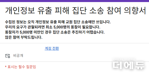 대초협은 16일 아이스크림미디어 개인정보 유출 사건과 관련해 5000명이 넘는 교사들이 집단 소송 참여 의향을 보였다고 밝혔다.