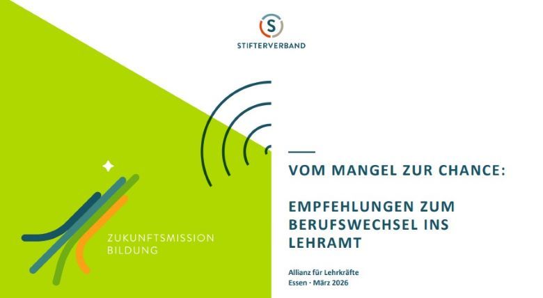 독일 학술재단연합(Stifterverband)은 지난달 30일 교직개방 시대의 교사 질 관리를 위한 권고사항을 담은 ‘부족에서 기회로’ 정책 보고서를 발표했다.