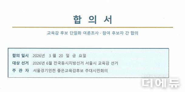 더에듀 지성배 기자 | 서울교육감 선거 보수 후보 단일화에서 여론조사 유·무선 비율이 정해진 대로 진행되지 않았다며 결과 불복을 선언한 류수노 예비후보에 대해 단일화 기구가 합의서를 공개하며 “사실과 다르다”고 반박하고 나섰다.